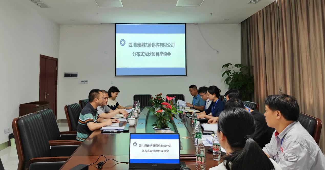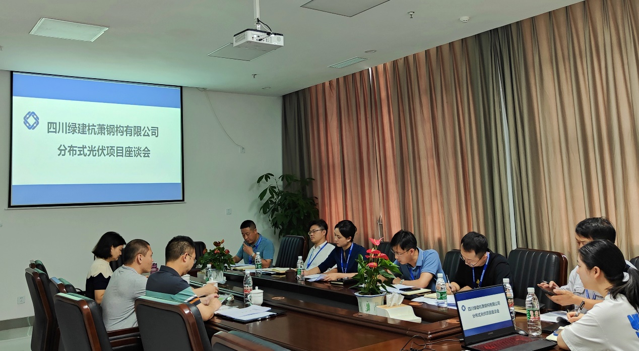 2022年6月30日上午,四川綠建杭蕭鋼構(gòu)有限公司(以下簡稱:綠建杭蕭)與四川省能源投資集團有限責任公司相關(guān)負責人共同召開分布式光伏項目座談會。綠建杭蕭總經(jīng)理古敏同志攜領(lǐng)導(dǎo)班子與相關(guān)部門負責人參加會議。