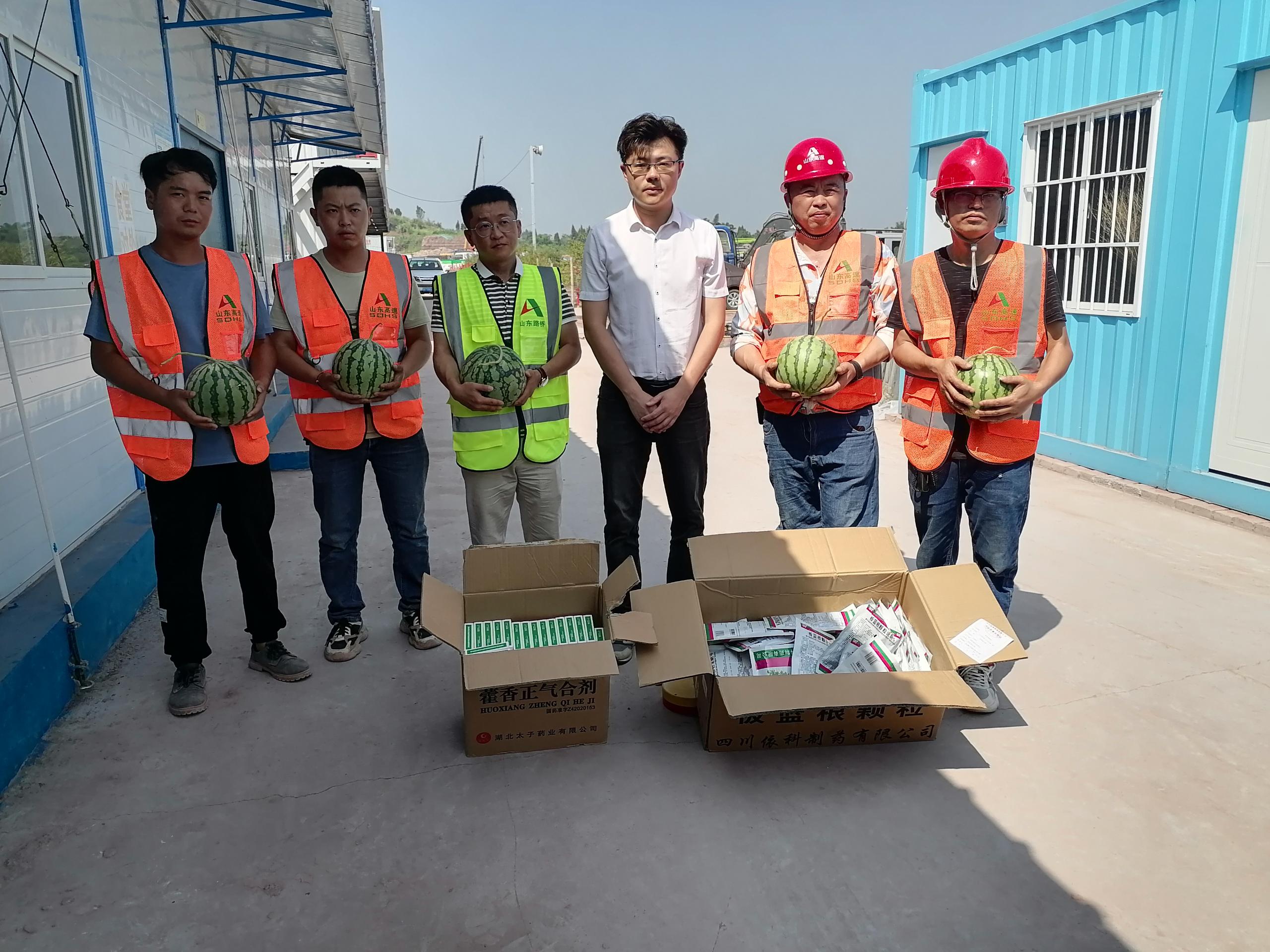 每到一個項目施工現(xiàn)場,周士棠同志都深入一線職工當中,與大家親切交談,親自將一個個西瓜,一盒盒防暑藥品發(fā)放到大家手中,細致詢問大家近期的生活情況和工作情況,實地查看項目進展情況。了解到員工在近40攝氏度的酷熱下依舊堅持高溫作業(yè),加班加點堅守施工一線,爭分奪秒比質量搶進度后,周士棠同志對大家在高溫天氣仍堅守崗位、辛苦勞動付出的精神表示高度肯定與贊揚。